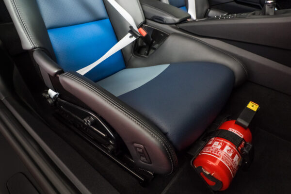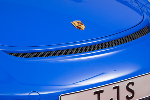 Um den Gedanken und die Farbgebung des 964 RS weiter aufzugreifen, hat der Erstbesitzer auch die Sitzkissen in Leder im Stil der damaligen 3-farbig blauen Sitzkissen des Luftgekühlten 911 / 964 RS fertigen lassen.